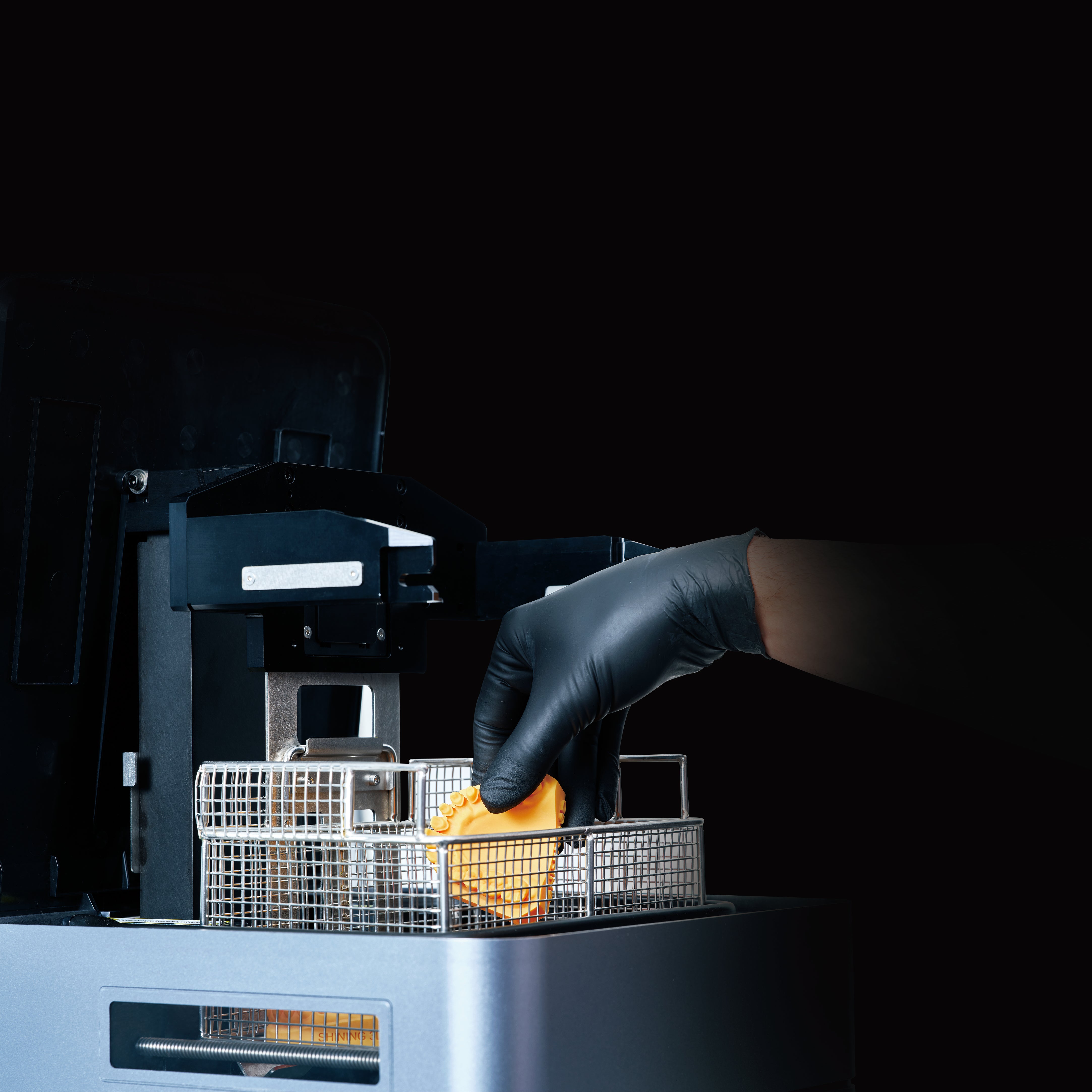 FabWash es el primer sistema de lavado, secado y liberación de piezas de varias etapas completamente automatizado, diseñado para proporcionar la facilidad de uso, la consistencia, la velocidad y la limpieza que exige la impresión 3D dental moderna.